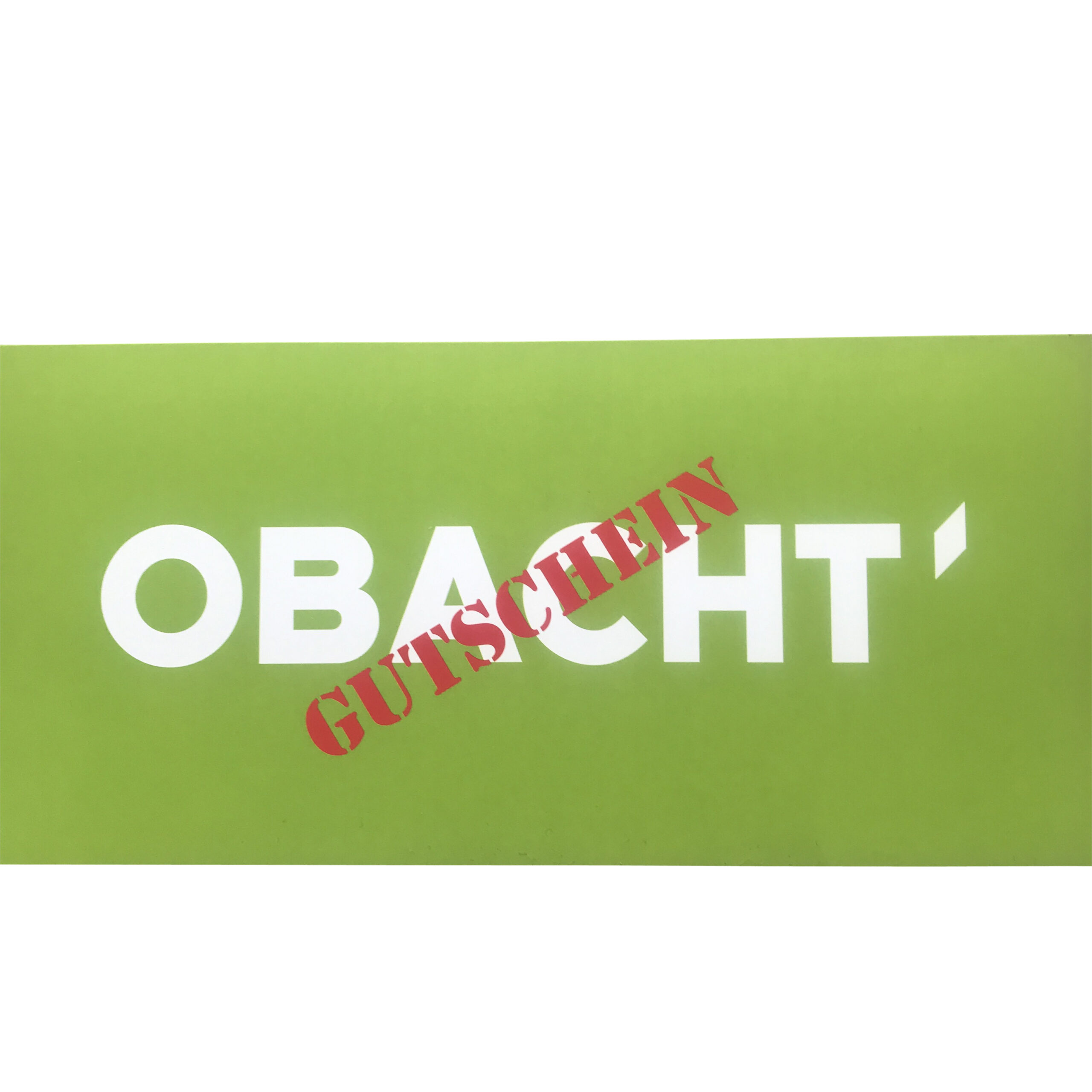 Wenn Du deinen Freunden und Bekannten selbst die Wahl lassen möchtest, was sie aus dem hübschen OBACHT-Sortiment aussuchen möchten, dann verschenke doch einen Gutschein 10,00€ OBACHT. Mit der Belegnummer, die auf dem Gutschein vermerkt wurde, kann der Gutschein dann eingelöst werden.